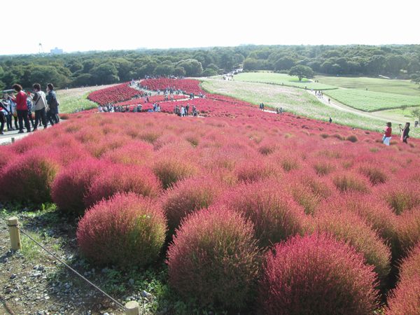 朝のニュースで国営ひたち海浜公園のコキアが紅葉し、今が見頃という情報を発信していました。